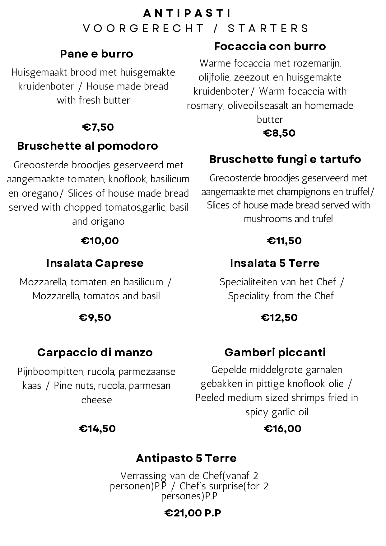 More than 12 years of experience and improvement to find the best recipe so the guest will feel themselves in Italy just in a small but unique bite!